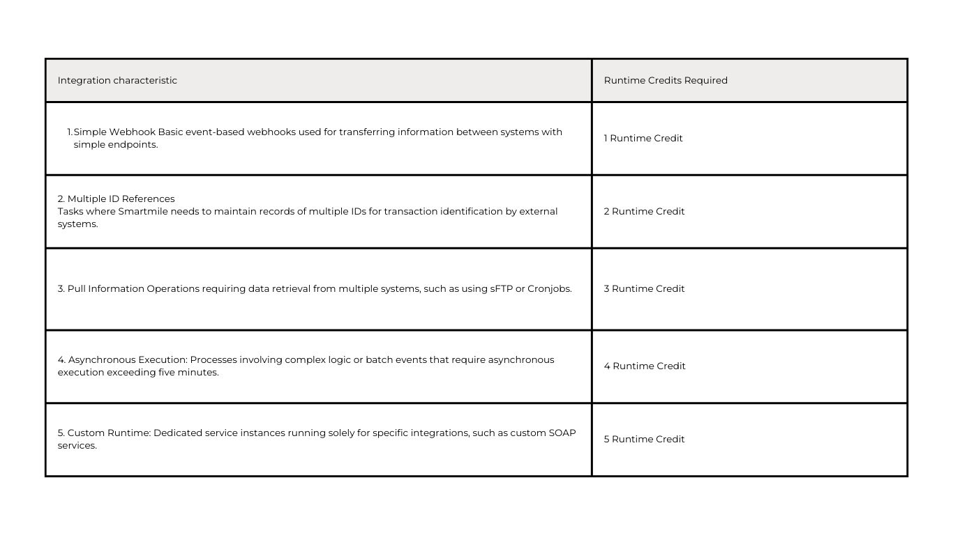 Based on the number of integrations per locker, we calculate the required Runtime Credits during the planning phase.
